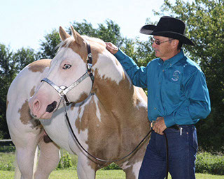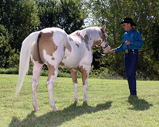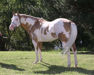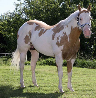 Sunny is great to handle, gentle and well mannered. He is loud colored, with a bald face, and medicine cap.